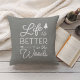 Eenvoudig charmant in een rustige moderne stijl: onze gevlekte gooikussens is voorzien van een zachte, grijze achtergrond met "het leven is beter in de bossen", omgeven door witte typografie. Pas de achterkant aan met uw familienaam en het vastgestelde jaar.