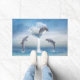 A dolphin jumps out of the heart into the ocean. This dolphin is expected from two other dolphins. Fill in your information in the template. Click on Customize to personalized the gift product!