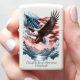 Met vleugels wijd verspreid en de Amerikaanse vlag in zijn greep, beveelt een zeearend de lucht in dit adembenemende afbeelding. Rode, witte en blauwe bergen weerspiegelen de gedurfde boodschap van vrijheid en trots. "Trots om een Amerikaan te zijn" zit trots boven, het verenigen van schetslijnen en geschilderde tonen in een prachtige balans van kunst en boodschap. Het is het perfecte eerbetoon aan de blijvende geest van de Verenigde Staten.