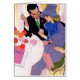 Artist:Joe DeMers | Vrouw in een paarse jurk en pet drink koffie aan tafel met een man dat een sigaret rookt