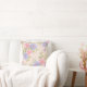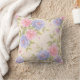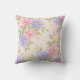 Dit kussen heeft een zachte crème achtergrond met roze en blauw roos.