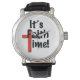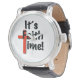 Dit komt uit een legendarische preek die ongeveer 5 jaar geleden werd gehoord. De predikant vroeg de gemeente hoe laat het was. Terwijl mijn broer naar zijn horloge keek, keek de predikant, keek mijn broer en zei: "Kijk niet naar je horloge." Toen sloeg hij zijn vuist op het podium en schreeuwde zo luid als een mens kon schreeuwen: "IT'S FAITH TIME!" Ik dacht dat het een goed idee zou zijn voor een horloge.