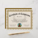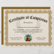 Voeg uw bedrijf logo toe en pas de titel van deze certificaattoekenning aan. Schrijfformaat 8.5 x11" Certificaat van voltooiing om personeel, studenten, werknemers of iedereen een opleiding, school of programma te gunnen. Aangepast ontwerp in elegant goudkleurig bruin. Show uw trots en enthousiasme over de inspanningen van uw studenten en personeel met dit klantgerichte, gepersonaliseerde certificaat. rosette woodsnijkunst grens met klassieke stijl. Voeg online uw eigen tekst toe, en ordecertificaten die voor uw ceremonie worden gemaakt. Verlaat de spatie van het handtekeningsgebied om een handtekening later toe te voegen, of typ jouw naam en titel, en voeg nog uw handtekening hierboven toe. De naam van Honoree kan in worden getypt of de lege lijn kan worden verlaten om hand-geschreven of gedrukte namen later toe te voegen.
