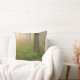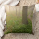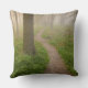 Gooi kussen met een wandelpad door de blauwriemen die in een bos in de zon op een woelige ochtend lopen, en creëer een magische atmosfeer.