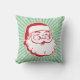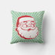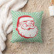 Dit moderne vakantiekussen uit het midden van de eeuw heeft een rode en witte retro-kerstman op een moderne lichtgroene en witte sneeuwvlokachtergrond. Versier uw huis dit vakantieseizoen met dit decoratieve kerstkussen uit het midden van de eeuw.