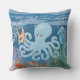 Een vriendelijke octopus omgeven door een schildpad, twee zeepaarden, een krab, een vreemde vis en allerlei onderwaterdingen.
