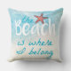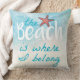 Het is duidelijk dat het strand mijn gelukkige plek is! Dit kussen is voorzien van een koraalzeester met een typografie die zegt: "Het strand is waar ik thuishoor" op een blauwe en roomachtergrond. De achterkant van de kussen is een zandige, beige kleur. Ideaal voor thuisgebruik, huishouden, cabine of voor een ander decor van elke dag! Ontwerp van Jenn's emporium.