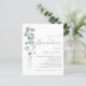 Een alternatief voor een budget van 4,5 x 5,6-inch halfglanzend gewicht van 110 lbs, dat even dik is als een briefkaart (maar niet geschikt om als briefkaart te worden gebruikt). GEEF NOTA ER ÉÉN UITnodiging per blad is. Eucalyptus Script Rehearsal Dinner Invitation Dit moderne ontwerp heeft eucalyptusbladeren aan de linkerkant en met informeel vastgesteld manuscript voor het Dinner van de repetitie. De rest van de typografie kunt u gemakkelijk personaliseren. U kunt tekst en achtergrondkleuren aan beide zijden ook wijzigen als u dit wenst via de optie Verdere aanpassing.