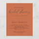 Het Vrijgezellenfeest Terracotta Uitnodiging van het manuscript. Een budgetprijs voor KLEINE 4,5 x 5,6 inch. Verkrijgbaar in een SEMI-GLOSS 110 lb KAART STOCK dat de standaardoptie is (dikker voor uitnodigingen), OF een SATIN FINISH 80 lb THINER PAPER STOCK (ideaal voor behuizingen). De enveloppen zijn een facultatieve extra en zijn lichtjes groter dan de kaartgrootte. Het vrijgezellenfeest is in een geplaatst handschrijvend stijlmanuscript. Pas de rest van de tekst eenvoudig aan uw eigen details aan. U kunt de tekst en achtergrondkleuren ook wijzigen via de optie Verdere aanpassing aanpassen als u dat wenst.