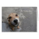 Super schattige pooch die naar zijn eigenaar kijkt.