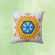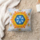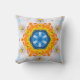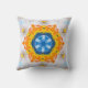 Hex Mandala Blauw Geel Sinaasappel en Wit Kussen