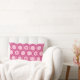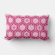Traditionele Japanse kimono print lumbale kussen - nestende zeshoeken met een centraal bloemmotief in diepgebrande wijn, fuchsia roze en wit op een pastelroze achtergrond