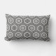 Traditionele Japanse kimono print lumbale kussen - nestende zeshoeken met een centraal bloemmotief in donkergrijs / grijs, wit en zwart op een lichte zilvergrijze achtergrond
