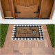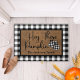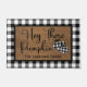 Doormat heeft de woorden "Hey Daar Pumpkin" in zwart scripted font op een natuurlijke coirachtige achtergrond met zwarte en witte pompoen van buffelroodpompoen en een zwarte en witte buffelrand. Pas aan door uw familienaam of favoriete tekst toe te voegen om dit model uniek van u te maken.
