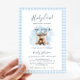 Celebrate the upcoming arrival of a precious baby boy with this charming “Holy Cow!” baby shower invitation. Featuring an adorable watercolor baby calf sitting on a swing, surrounded by soft blue florals and a classic blue gingham border, this invitation is perfect for a sweet western or farm themed baby shower.