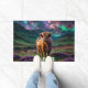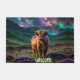 Prachtige Highland koe omgeven door weelderige groene bergen en kleurrijke nevels in de lucht. AI ART CREËER DOOR MINX267
