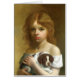 Het kleine meisje is haar hond in haar armen houden. Ze is gezegde, hij is niet te koop en lijkt klaar om te vechten om haar puppy te houden.