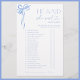 Vier de eigenaardigheden, romance en kleine verrassingen die het liefdesverhaal van een paar uniek maken met deze He Said, She Said-game. Ontworpen met tijdloze elegantie in het achterhoofd, nodigt deze interactieve activiteit gasten uit om te raden wie wat zei - een heerlijke mix van nostalgie, plezier en een vleugje vriendelijke concurrentie creëren. Het klassieke blauwe lintmotief en de gepolijste typografie zorgen ervoor dat zelfs de meest speelse momenten verfijnd en mooi samengesteld aanvoelen. Een ideale aanvulling op vrijgezellenfeesten, verlovingsfeesten of repetitiediners, dit spel combineert lachen met verhalen vertellen, waardoor gasten dichter bij het paar komen op een manier die zowel intiem als feestelijk aanvoelt. Of je nu een chique brunch, een glamoureuze soirée of een elegante afternoon tea plant, dit stuk past naadloos in elke evenementenomgeving. Op zoek naar coördinerende design, aangepaste bewoordingen of een uniek kleurenpalet? De ontwerper is beschikbaar om uw visie tot leven te brengen met op maat gemaakte details die uw feest verheffen. Copyright Anastasia Surridge, alle rechten voorbehouden.