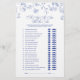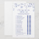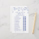 Blue Floral Hij zei dat ze zei Game Kaart Breng lachen en plezier aan uw feest met deze blauwe bloemen "Hij zei dat ze zei - Wie was de eerste" spelkaart. Gasten cirkelen hun antwoorden om te raden wie elke mijlpaal het eerst zei of deed, van de eerste kus tot het plannen van datumavonden. Dit ontwerp is versierd met sierlijke handgetekende blauwbloemillustraties en bijpassende iconen en voegt een vleugje tijdloze charme toe aan bruiloften, vrijgezellenfeesten of verlovingsfeesten. Een perfecte ijsbreker en aandenken voor het gelukkige paar. Copyright Anastasia Surridge, alle rechten voorbehouden.