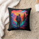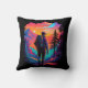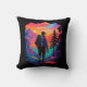 Een koele retro stijl kleurrijke berglandschap ontwerp met een wandelaar in de zonsondergang.