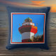Dit kussen is donkerblauw (marineblauw) en het vuurtoren afbeelding heeft een rode en witte rand. De opvallende rood-witte vuurtoren van Harbour Town is een gedenkwaardig icoon van Hilton Head Island, soms gewoon afgekort als HHI. Boaters in de Calibogue Sound en golfers in en bij het Zee Pines resort kunnen gemakkelijk hun weg terug vinden naar Harbour Town op deze populaire badplaats in South Carolina. Hilton Head is een populaire toeristische bestemming voor alle soorten sport, zoals tennis en golfen, evenals varen en winkelen,