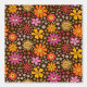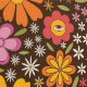 Dit is schattig hippie psychedelische groovy jaren 70 bloemenpatroon met surrealistische oogjes in sinaasappel, rood, roze met kleine groene bladeren op donkere achtergrond.