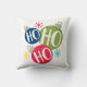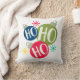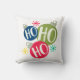 Ho Ho Ho Festive Kerstmis Modern Holiday Sierkussennen Cushions kenmerkt drie flitselijke kerstblaasjes met de tekst "Ho Ho Ho" in de moderne typografie met sneeuwvlokken. Ontworpen door Evco Feestdagen www.zazzle.com/store/evcoholidays