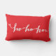 Rood kerstfeest Ho Ho Typografie Throw kussen. Dit mooie kerstontwerp zal elk decor-, kantoor- of studentenkamer verbeteren. Een geweldig cadeau voor jezelf of iemand speciaal. Pas je cadeau aan door je eigen naam of initialen toe te voegen. Kies uw eigen doopvont en kleuren om het uw te maken. Verkrijgbaar in vierkante afmetingen van 16 of 20 inch en een rechthoekige grootte van 13 inch van 21 inch. Invoegen inbegrepen. (Ook beschikbaar als patio- of tuinkussens, selecteer buiten in het tabblad Fabric en kies de gewenste grootte).