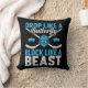 Hockey Goalie gooit kussens met blauwe en witte tekst, helm met masker, opponenten en hockey sticks: Daling als een Butterfly Block als een Beest!