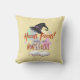 Dit afbeelding heeft een speels en humoristisch Halloween-ontwerp. Het pet van een heks hangt boven een open boek en de tekst "Hocus Pocus? More Like Mom's Focus" wordt weergegeven in een leuk, handgeschreven lettertype. Het kleurenpalet is licht en vrolijk, met een gele achtergrond en pastelaccenten. Het algehele ontwerp is evenwichtig en visueel aantrekkelijk, ideaal voor Halloween-thema kleding, decoraties of wenskaarten.