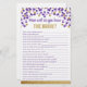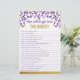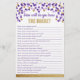 Hoe goed ken je de Bride? Spel voor Vrijgezellenfeest in paars en goud. Een beetje trivia over de nieuwe bruid om te zijn is altijd leuk om te spelen en je gasten uit te dagen.