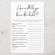 Hoe goed ken je de bruid? Is een leuk vrijgezellenfeest spel. Minimalistisch, elegant, chique design.