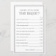 Dit is een "Hoe goed ken je de bruid?" spelletje uit het vrijgezellenfeest. Het is een eenvoudig en stijlvol typografisch ontwerp in klassiek zwart-wit voor een chique en tijdloze look. Bewerk alle vragen zoals vereist. Neem contact op met de ontwerper voor vragen over dit ontwerp.
