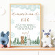 Stap in een winter wonderland van vreugde als we de komende komst van een kostbare kleine vieren! Ga met ons mee voor een hartverwarmend baby shower met het thema "Baby, It's Cold Outside" dat perfect de magie van het seizoen weergeeft. Onze uitnodiging is versierd met delicate waterverf kunstwerken, met betoverende sneeuwbomen, delicate sneeuwvlokken die dansen in de ijzige lucht, en een sereen winterlandschap dat het podium vormt voor deze heuglijke gebeurtenis. Deze uitnodiging omarmt een genderneutraal palet en verwelkomt iedereen om te delen in de anticipatie en opwinding van de aanstaande komst. Een charmante touch wordt toegevoegd met de aanwezigheid van een lief konijntje en een knuffelig beer, genesteld tussen het winterlandschap, symboliseert de warmte en gezelligheid van deze nieuwe reis naar het ouderschap.