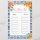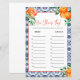 Dit leuke zomerspel met vrijgezellenfeest heeft een Italiaans Aperol Spritz-thema met citrusaccenten. De voorste afbeelding is een waterverf Aperol spritz met hibiscus en fruittoppings. De rug is een passend oranje plakpatroon van de waterverf met een minimalistische witte achtergrond. Het is leuk en griezelig, perfect voor zomercocktailvrijgezellenfeesten.