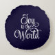 This holiday throw pillow is shown with a Joy to The World print.