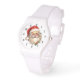 Een horloge met een vrolijke illustratie van een kerstman met rode rooskleurige wangen. met zijn klassieke rode kerstmuts en zijn grote witte beer. Een takje hulst draagt bij aan de feestelijke vakantiegeest van dit ontwerp.