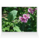 Un grand carte pour notes fleuri. Élégants hollyhocks roses entourés de feuillage vert vif.