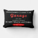Thuisauto Mechanic Garage Classic Car Flying Tools Black Lumbar Pillow. Ontwerp van Claudine Boerner.