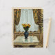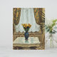 Gepersonaliseerde vintage eettafel en stoelen met een vaas van gele rozenbloemen, plakboek papier en sepia op de achterzijde. Crafting, verjaardag en decoupage ideeën.