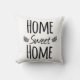 Dit schattige kussen is het perfecte accent voor elke kamer in uw huis. Het is een wit kussen met een typografisch ontwerp met de tekst "Home Sweet Home". Het woord zoet wordt aan beide kanten geaccentueerd door bladeren.