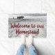 Homstead deurmat met fotokunst van een boer die het veld bedient. U kunt de doopvont en doopvontkleur veranderen als u zou willen.