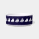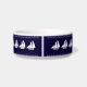 Hondenbak wordt weergegeven in het wit met een accentstreep in navyblauw met een leuke zeilboot- en ankerprint.