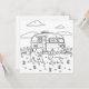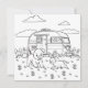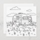 Schattigee kleurplaat met een met een campingthema. Een schattige puppy hond en konijn spelen in de tuin voor een camper.