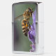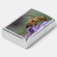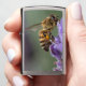 Sluit de fotografie van een Honey Bee & Lavender Flower Zippo Lighter. Afbeelding van een honingbij die pollen verzamelt van een lavenderkruidenbloem. Uniek cadeauidee. Fotografie door Chris Jo.