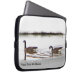Op een grijze lentedag in Alaska zwemmen twee Canadese ganzen, vaak aangeduid als "honkers", in een watermassa die nog gedeeltelijk verstikt is met ijs. Dit afbeelding is van een foto genomen door de artiest. Aanpassen door uw eigen tekst toe te voegen. De Canadese gans, Branta canadensis, heeft een zwarte kop en hals, witte vlekken op het gezicht en een bruingrijs lichaam. De zwarte kop en hals met witte "chinstrap" onderscheiden de Canadese gans van alle andere ganzen, met uitzondering van de Barnacle Goose, maar de laatste heeft een zwarte borst, en ook grijs, in plaats van bruin, lichaamsverenkleed. De Canada Goose heeft een lengte van 30 tot 43 inch en een spanwijdte van 50 tot 73 inch. Mannetjes wegen meestal 7,1-14 lbs en kunnen zeer agressief zijn in het verdedigen van territorium. Het vrouw ziet er vrijwel hetzelfde uit, maar is iets lichter met een gewicht van 5,5-12 lbs en heeft een andere toets. De levensverwachting in het wild van ganzen die volwassen worden varieert van 10 tot 24 jaar Canada Ganzen komen voor in Noord-Amerika. Ze broeden in Canada en het noorden van de Verenigde Staten in verschillende habitats. De nesten bevinden zich meestal in een hoger gelegen gebied in de buurt van water, zoals beken, meren, vijvers en soms op een beverhut. De eieren worden gelegd in een ondiepe, met plant beklede ondergrond. In de afgelopen jaren zijn de Canadese ganzenpopulaties in sommige gebieden aanzienlijk gegroeid, zozeer zelfs dat velen hen als ongedierte beschouwen voor hun uitwerpselen, bacteriën in hun uitwerpselen, lawaai en confronterend gedrag. Dit probleem is deels te wijten aan het verdwijnen van natuurlijke roofdieren en een overvloed aan veilige, door man aangemaakte waterlichamen, zoals te vinden op golfbanen, in openbare parken en stranden, en in geplande gemeenschappen. Gedeeltelijk door de kruising van verschillende trekkende ondersoorten met de geïntroduceerde niet-migrerende reuzenondersoort, zijn Canadese ganzen vaak een jaarrond kenmerk van dergelijke stedelijke omgevingen. Canada Ganzen hebben van nature Noord-Europa bereikt, zoals is gebleken uit de aanstormende recuperaties. De vogels behoren tot de ondersoort parvipes en mogelijk tot andere soorten. Canadese ganzen komen van nature voor op het schiereiland Kamtsjatka in Oost-Siberië, Oost-China en in Japan. Zoals de meeste ganzen is de Canada Goose trekvogels waarbij het overwinteringsgebied het grootste deel van de Verenigde Staten is. Hopen van grote groepen Canadese ganzen die in een V-vormige formatie vliegen, geven de overgang naar de lente en herfst aan. In sommige gebieden zijn de migratieroutes veranderd als gevolg van veranderingen in habitat en voedselbronnen. In milde klimaten van Californië tot de Grote Meren is een deel van de bevolking niet-migrerend geworden door voldoende wintervoedsel en een gebrek aan voormalige roofdieren. Canadese ganzen zijn voornamelijk planteneters, hoewel ze soms kleine insecten en vissen eten. Hun dieet bestaat uit groene vegetatie en granen. De Canadese gans eet een verscheidenheid aan grassen wanneer hij aan land is. Hij voedt zich met een grasspriet met de snavel en scheurt het vervolgens met een schok van het hoofd. De Canadese Gans eet ook granen zoals tarwe, bonen, rijst en maïs als ze beschikbaar zijn. In het water voedt het zich met slib op de bodem van het waterlichaam. Het voedt zich ook met planten, zoals zeewier. In stedelijke steden is het ook bekend dat ze voedsel uit vuilnisbakken pikken. Volwassen ganzen worden vaak gezien die hun struikgewas in een lijn leiden, meestal met de ene ouder aan de voorkant en de andere aan de achterkant. Terwijl ze hun goslings beschermen, jagen ouders vaak met geweld de nabijgelegen wezens weg, van kleine merels tot eenzame mensen die hen naderen, na hen te hebben gewaarschuwd door een sissend geluid af te geven en zullen dan aanvallen met beten en slagen van de vleugels als de dreiging zich niet terugtrekt of een gosling heeft ingenomen. De meeste soorten die op eieren azen, zullen ook een gosling nemen. Hoewel de ouders vijandig staan tegenover onbekende ganzen, kunnen ze groepen vormen van een aantal gollingen en een paar volwassenen, crèches genaamd.
