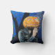Een spooky, Halloween gooit kussens met de pastelkunst, "The Headless Biker". Deze afbeelding is voorzien van een pompoenhoofdspook met een leren jasje dat een sigaret rookt op een koude, donkere oktober nacht. Oorspronkelijk kunstwerk: pastels op papier. Copyright Dominic A. White. Alle rechten voorbehouden.