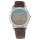 Een stijlvol horloge met horizontale strepen in bruin, beige en blauw in een moderne, minimalistische ontwerpstijl met een aanraking van strandvibes.
