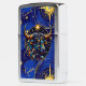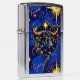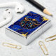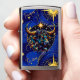 Royal blauw en goud Zippo aansteker met een stier symbool voor de horoscoop teken Stier met sterachtergrond. Een opvallende luchtkunstillustratie.