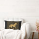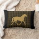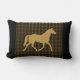 De perfecte kussens voor de paardenliefhebbers zijn omkeerbaar met verschillende design aan beide zijden. Een kant heeft een goudbruin paard op een gouden bruine en zwarte gestreepte vlecht. De andere zijde heeft een herhalende afdruk van een zwart paard op een effen kleur, gouden bruine achtergrond, gepersonaliseerd met gouden bruine tekst op een zwarte strip.